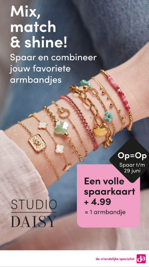 We are proud to share that Studio Daisy has been running a festive savings campaign at DA-drogist! Customers can collect stylish bracelets from our regular collection – a unique opportunity to discover our jewellery up close.